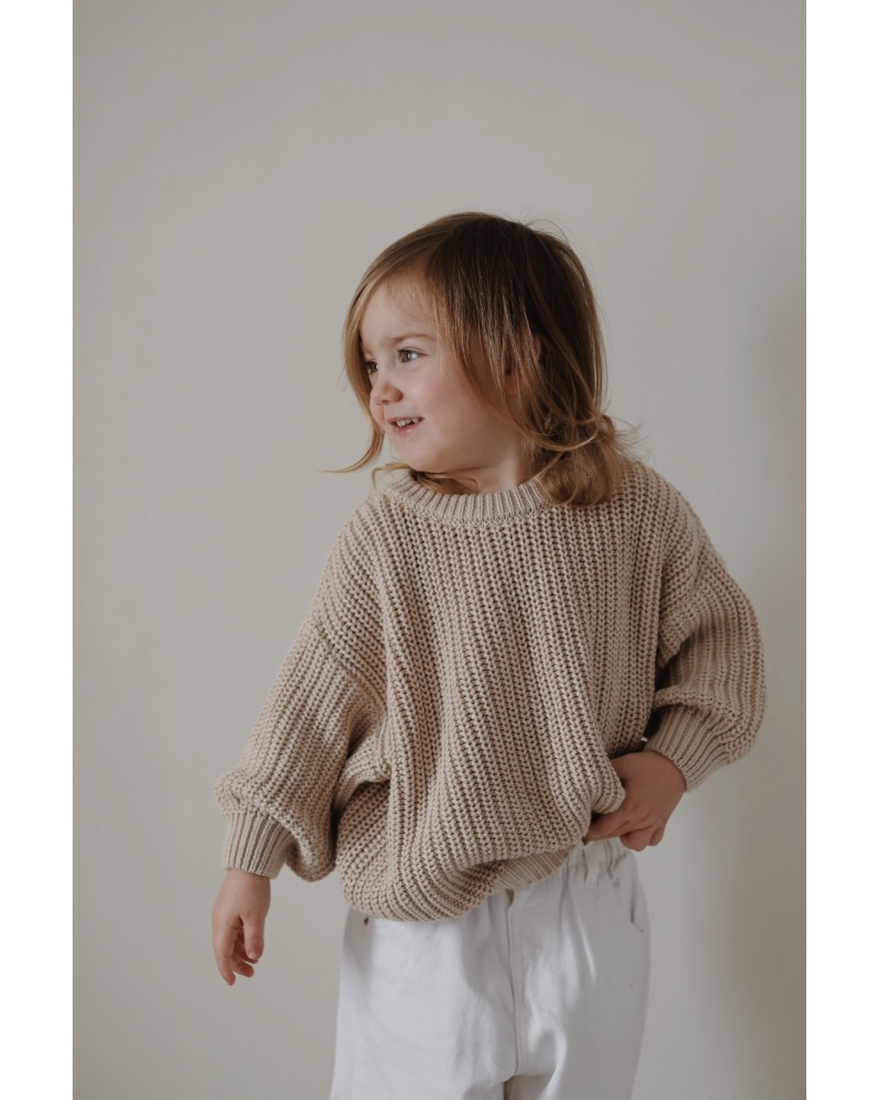 Sweterki mają oversizowy krój, który nie tylko dodaje stylu, ale także pozwala na swobodę ruchów i powoduje, że sweterek posłuży dłużej niż 1 sezon.